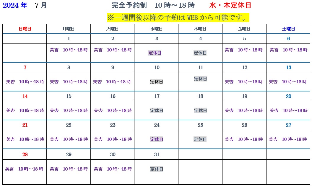 皆さん、こんにちは。沖縄県那覇市にある占いサロン369の令和6年7月の在籍占い師の対面占い鑑定のご予約受付表です。