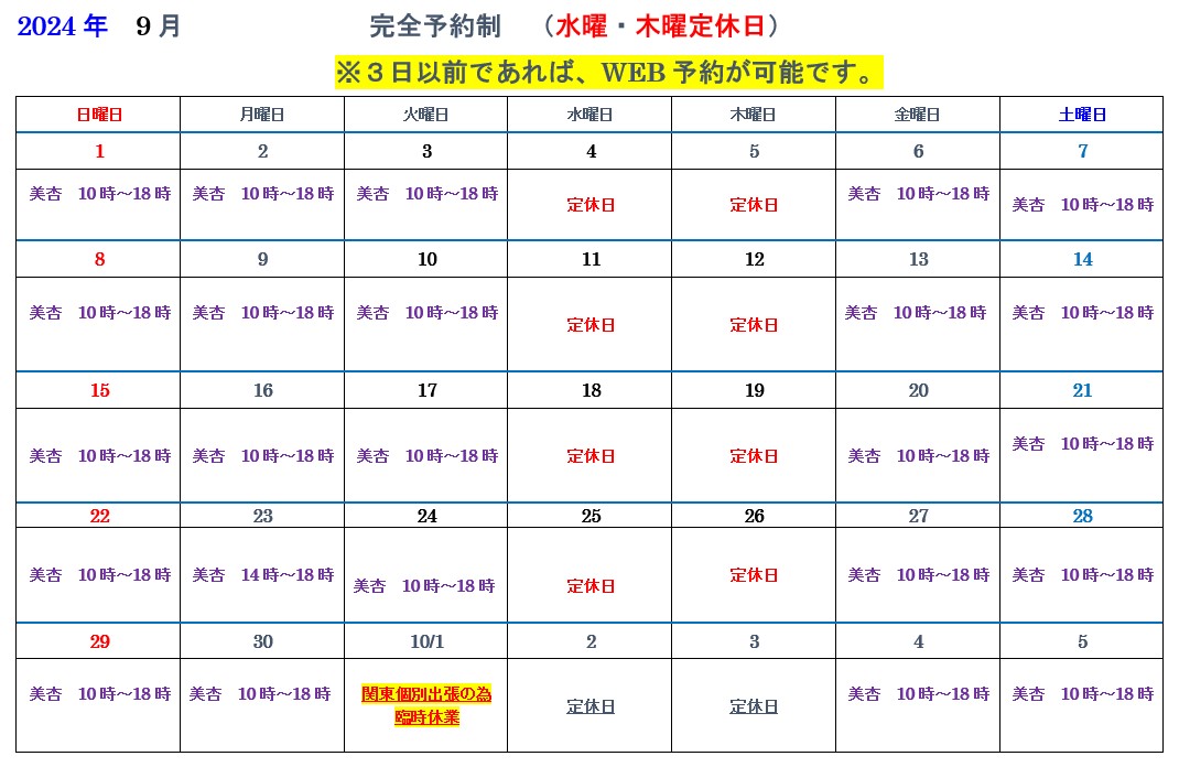 ※3日以内直近の予約は、水曜・木曜の定休日以外の10時~18時の営業時間内に098-943-3616へお問い合わせください。